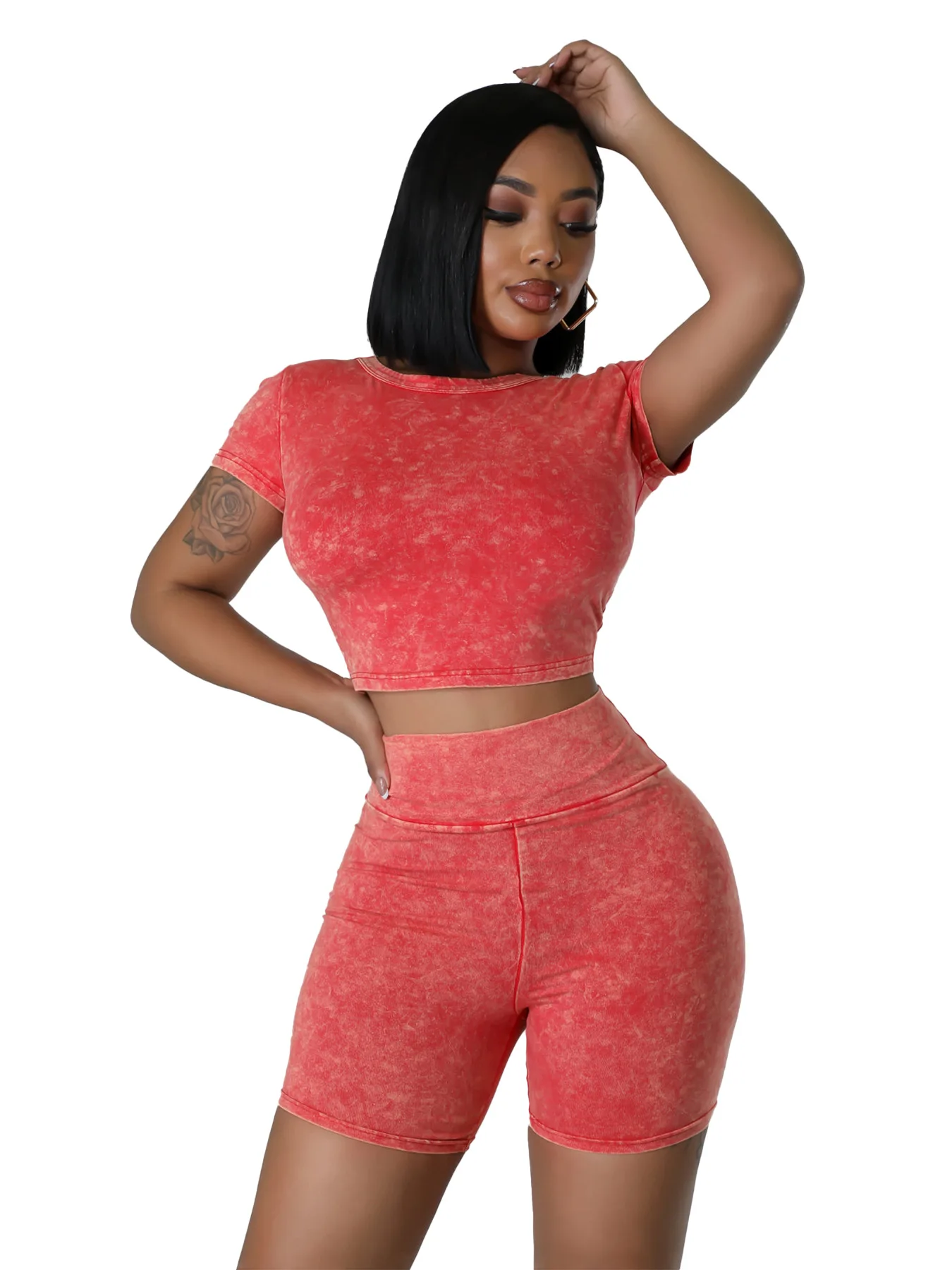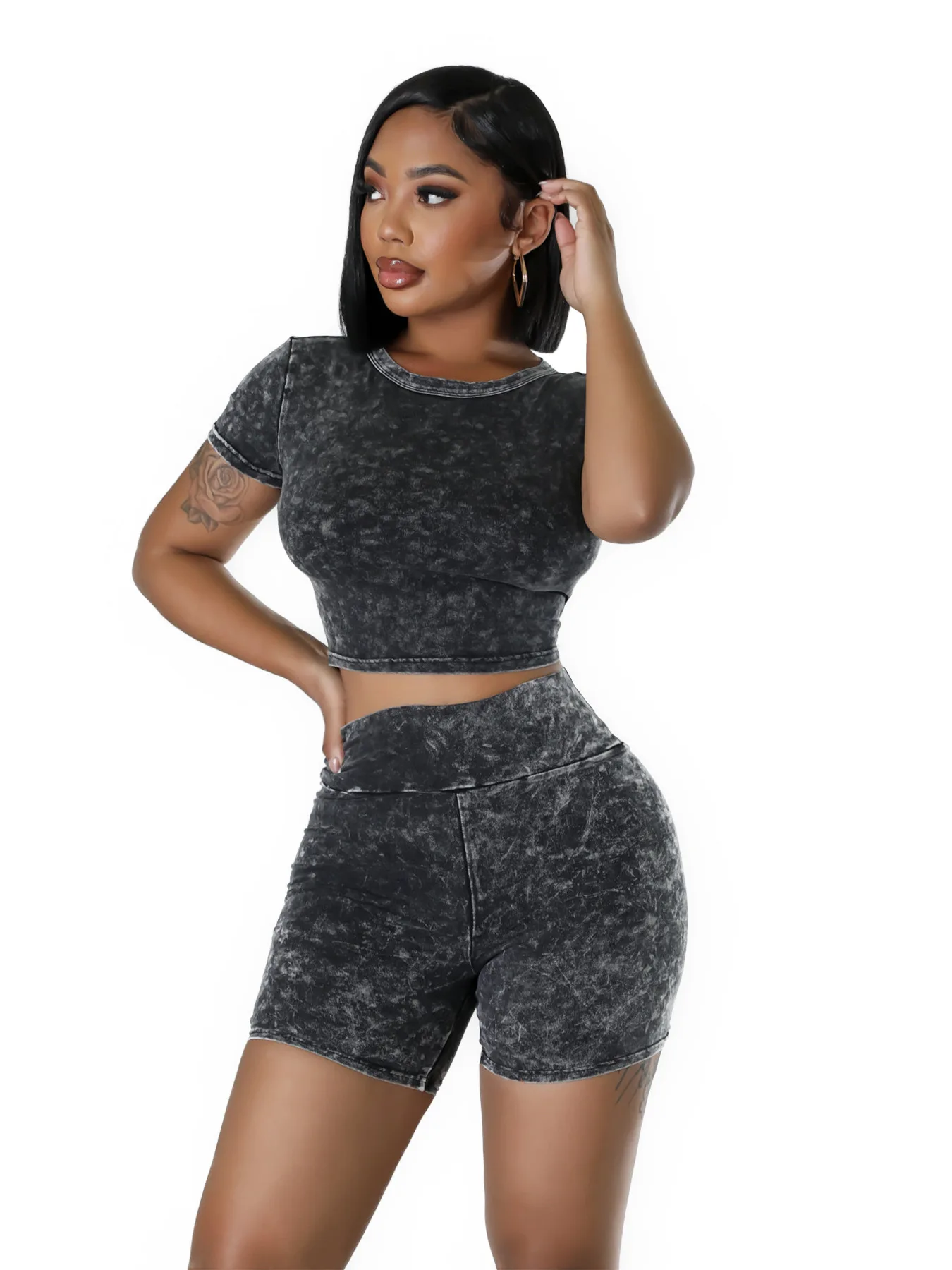 Custom Logo Summer Fashion Style Women Short Sleeve O Neck Crop Top High Waist Shorts Women Casual Two Pieces Set